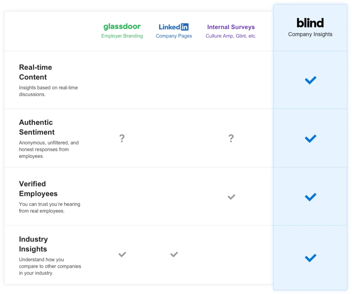 Find out more: The biggest names in tech are using Insights by Blind to drive their listening and intelligence strategies. To find out more about how Blind can support your strategies, schedule some time with our team or email aaron@teamblind.com